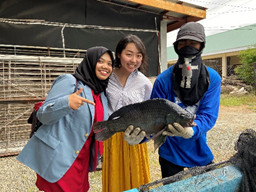 After the breakfast, we went to see fish tanks inside the campus to observe the fishes they grow. There were many fishes and I got to touch one of the big fishes among them.